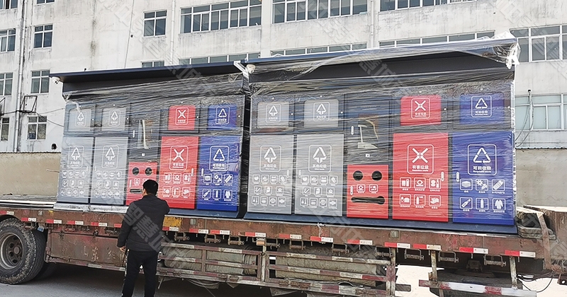 由宿遷市興科廣告設備有限公司生產制作的智能垃圾分類箱開始陸續發貨并投入使用。這款智能垃圾箱可根據不同年齡段居民實現手機APP、人臉識別、微信掃碼等方式開箱,箱體分類回收金屬、塑料、紡織物、紙類、玻璃、有害等多種生活垃圾,去繁就簡,智能稱重。